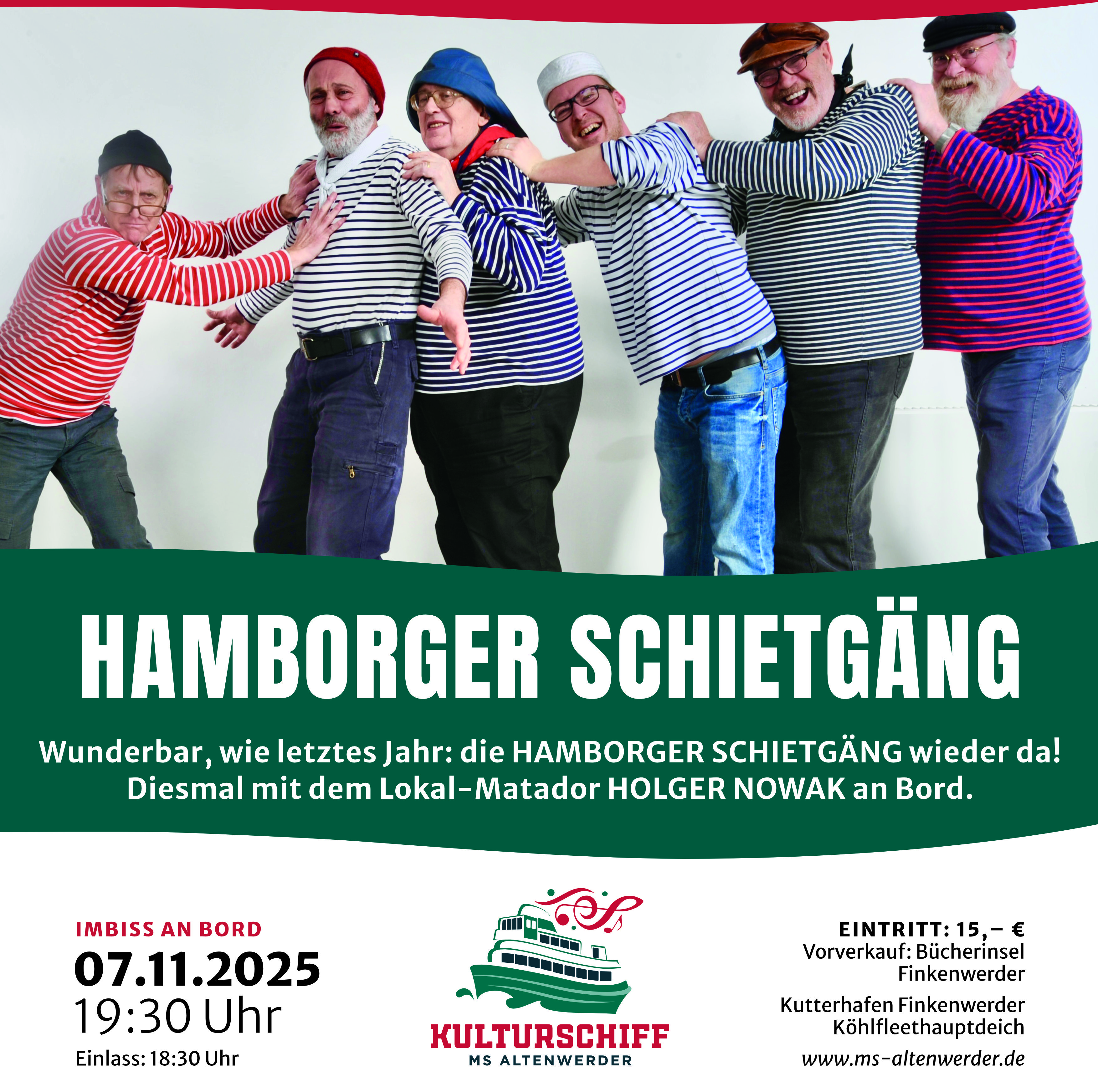 Diesmal mit HOLGER NOWAK an Bord. Präsentiert wird Maritimes Liedgut von gestern & heute von Altona bis Sansibar!